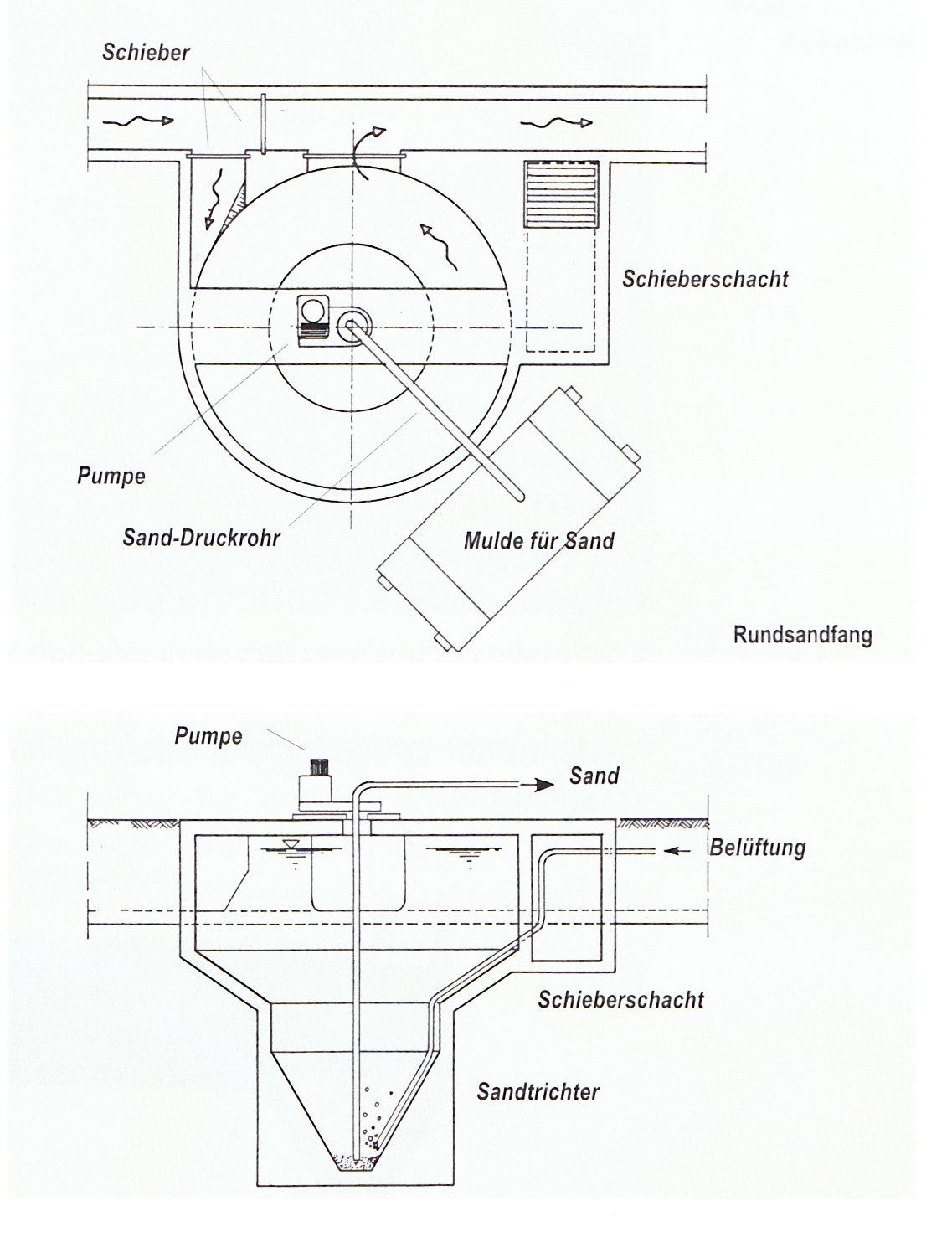 - stabile und ruhige Strömung im Bereich des Schlammtrichters, damit der abgesetzte Schlamm nicht wieder aufgewirbelt wird