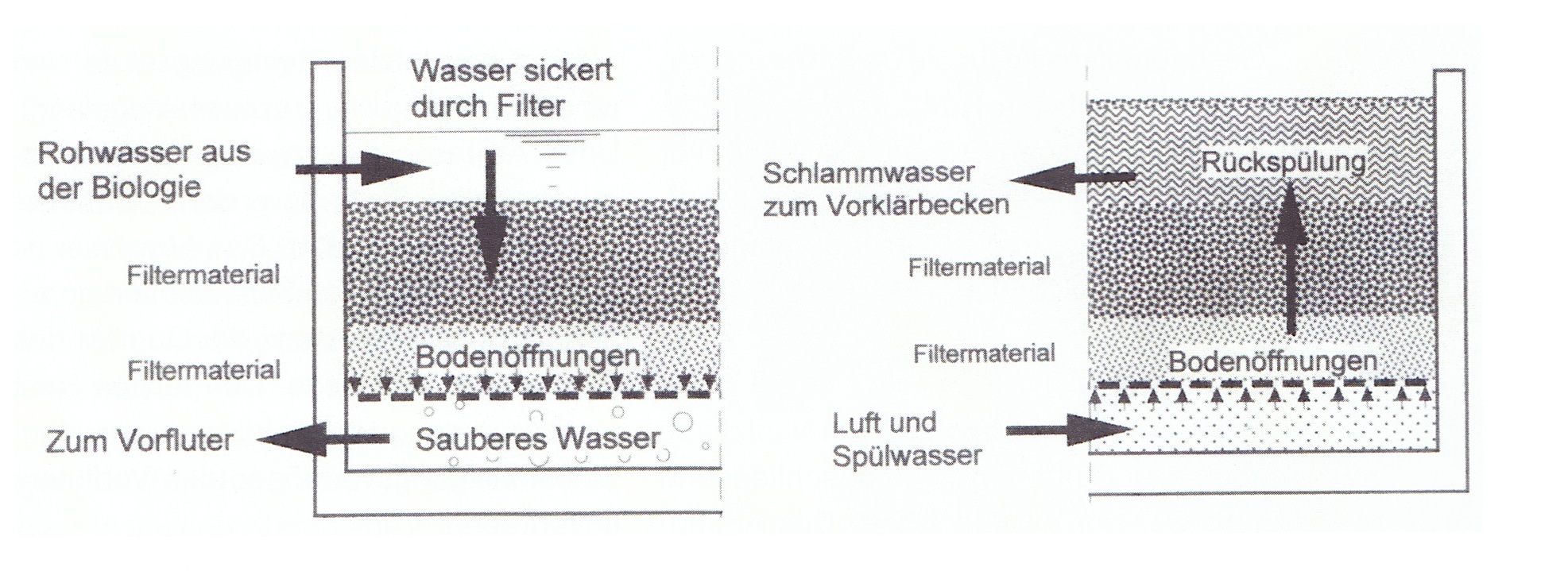 Filtermaterial= feinkörniger Quarzsand, Blähschiefer oder Anthrazitkohle